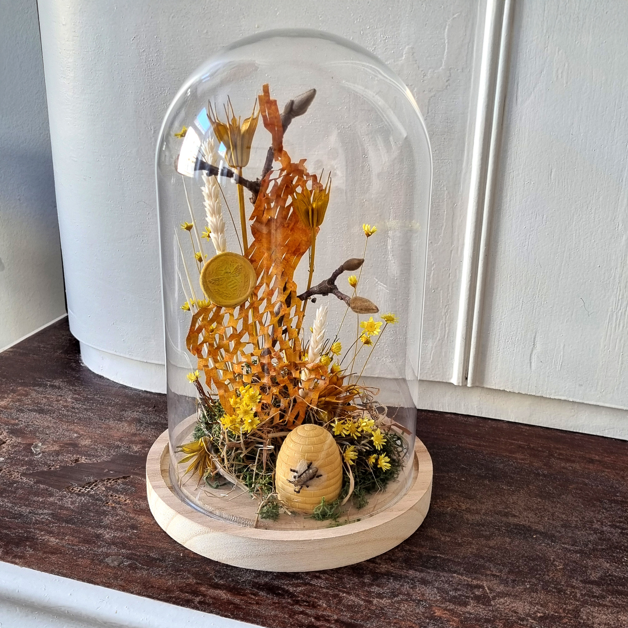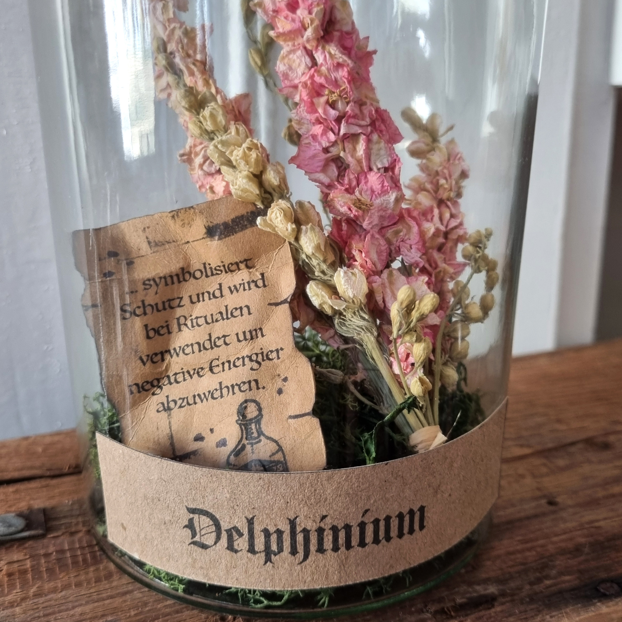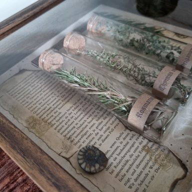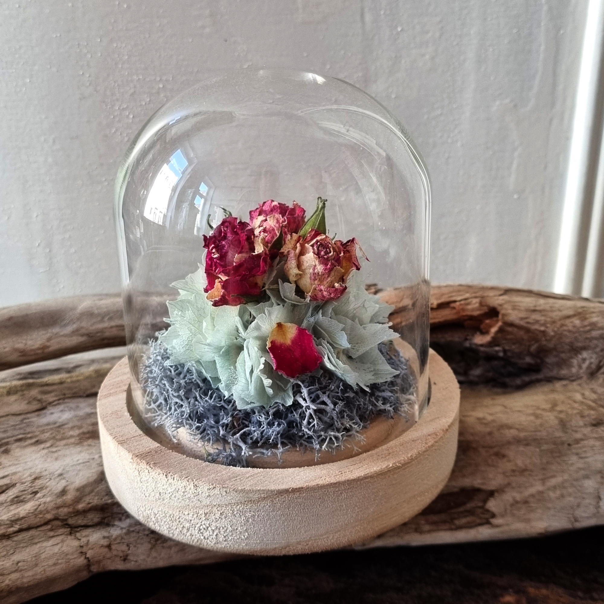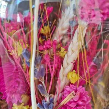 Trockenblumen unter Glas