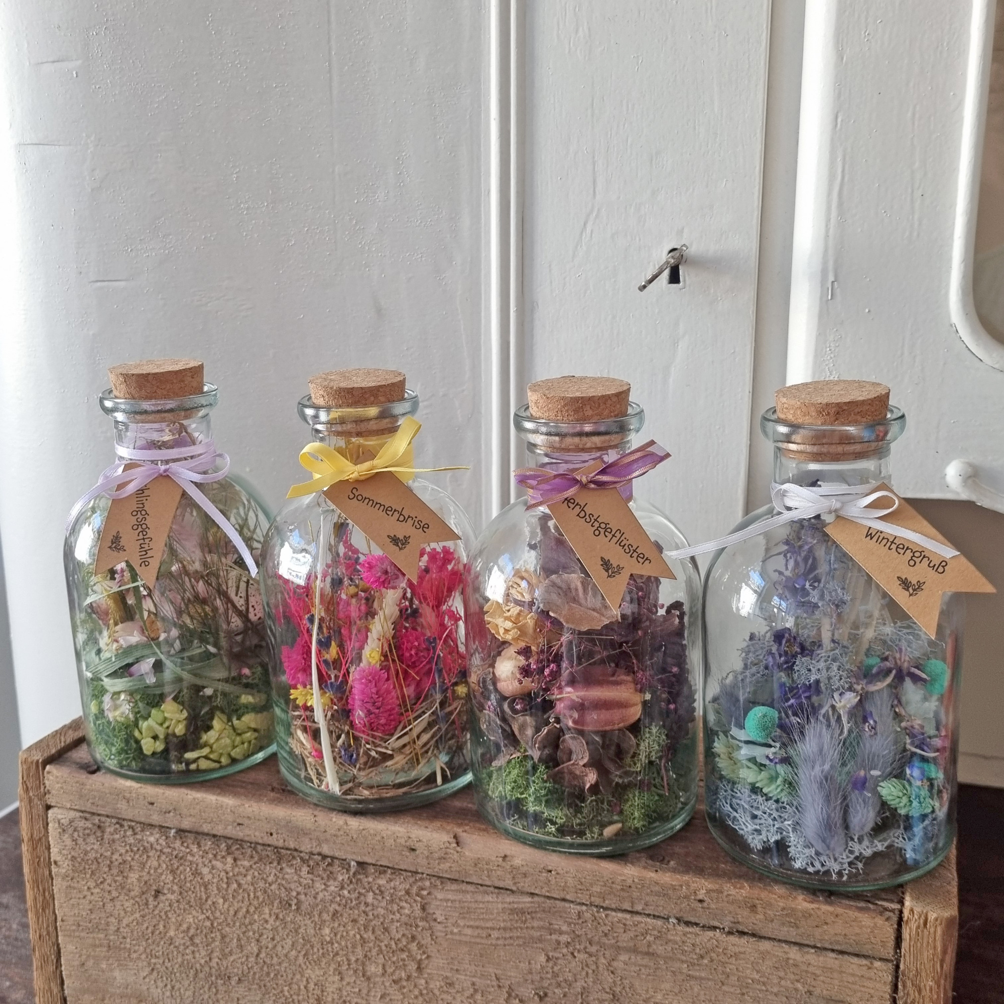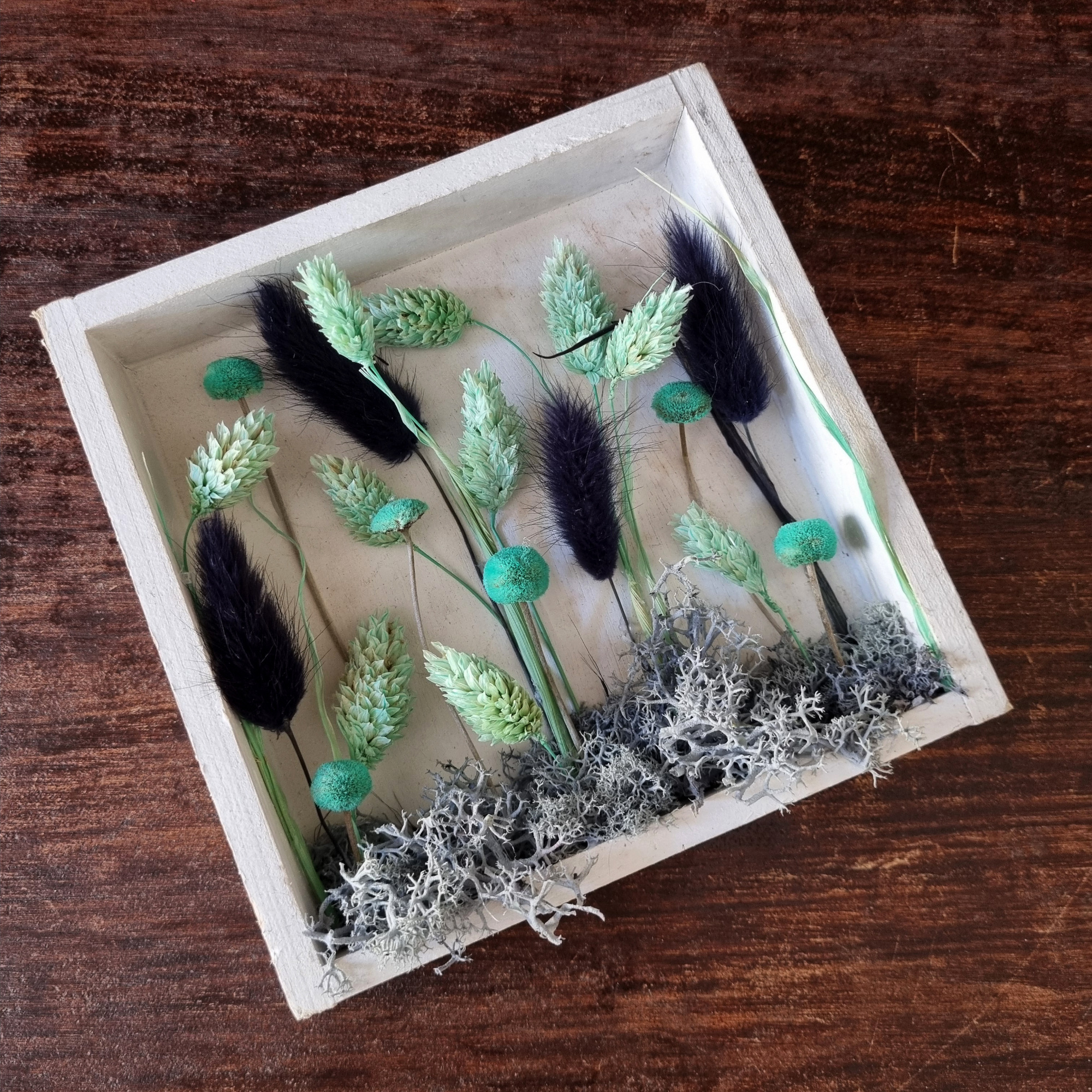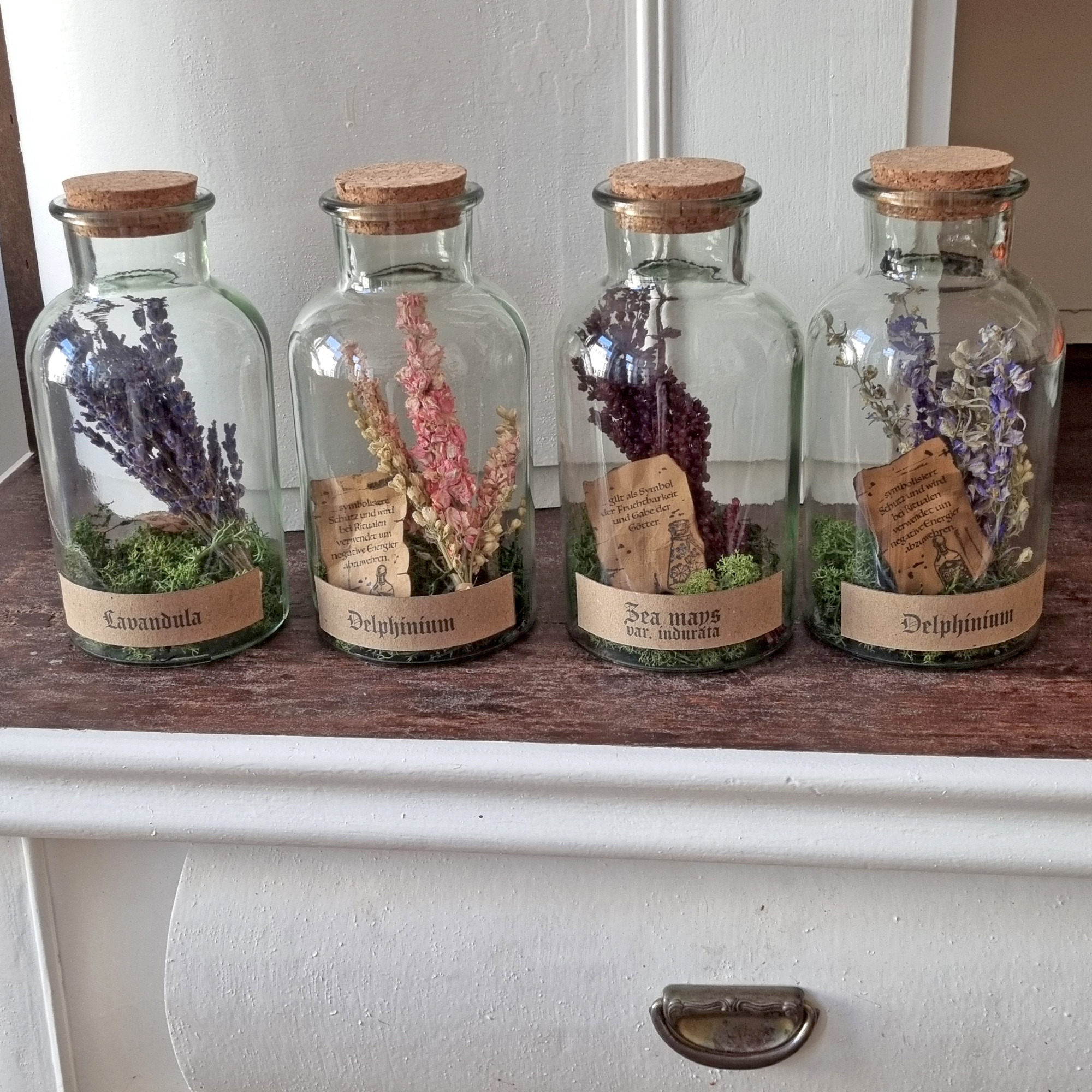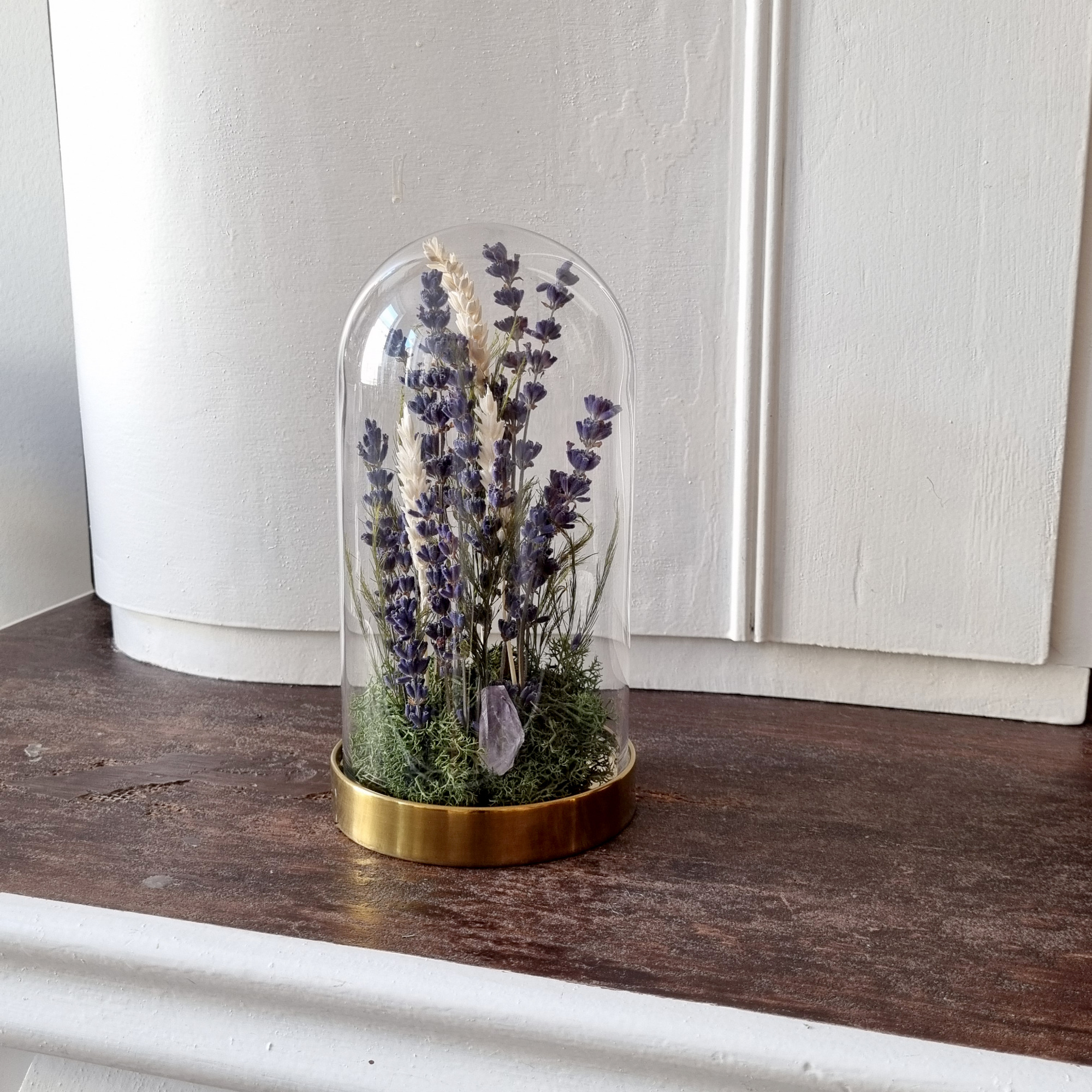 Trockenblumen unter Glas